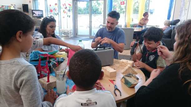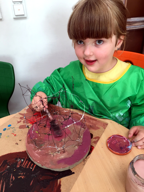 The Children create Animals and Objects with Ironwire and Transparentpaper.