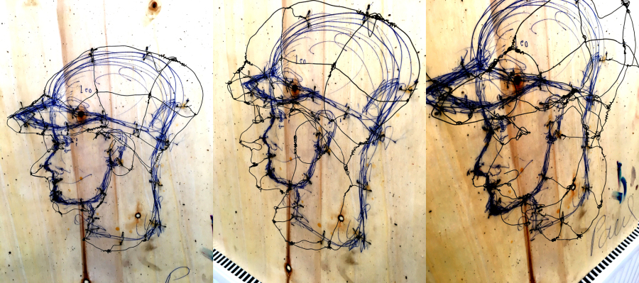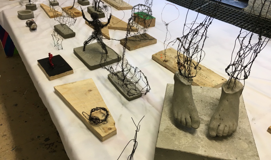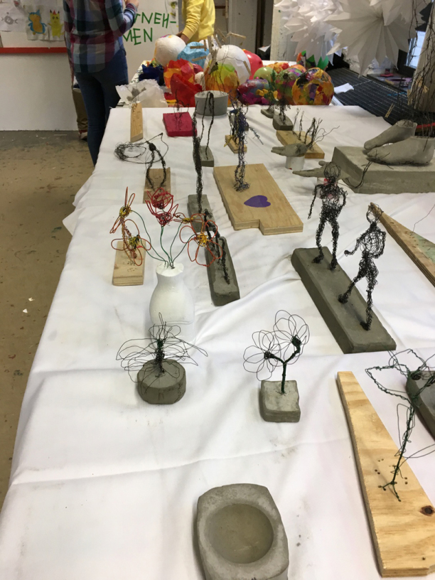 The Children work with ironwire on a piece of wood as Base, later we take off the figures and objects and pour them into beton.