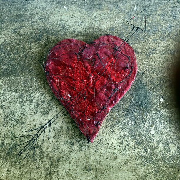 Emirs Heart Ironwire with Concrete, Silk Paper and Acrylic