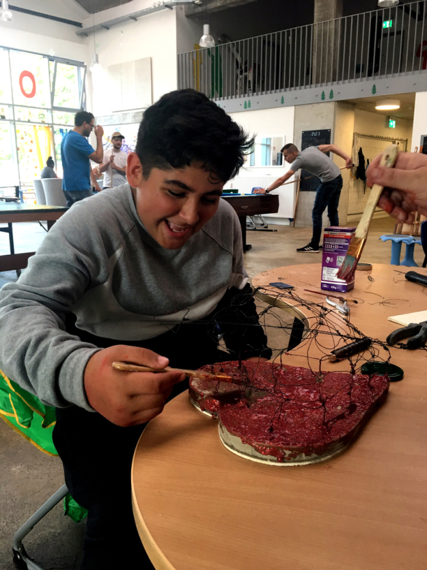 The Children create their artpieces with so much motivation, creativity and happiness, so at the End was a great exhibition with their parents and the team of Bleiberger Fabrik Aachen. 08/2018