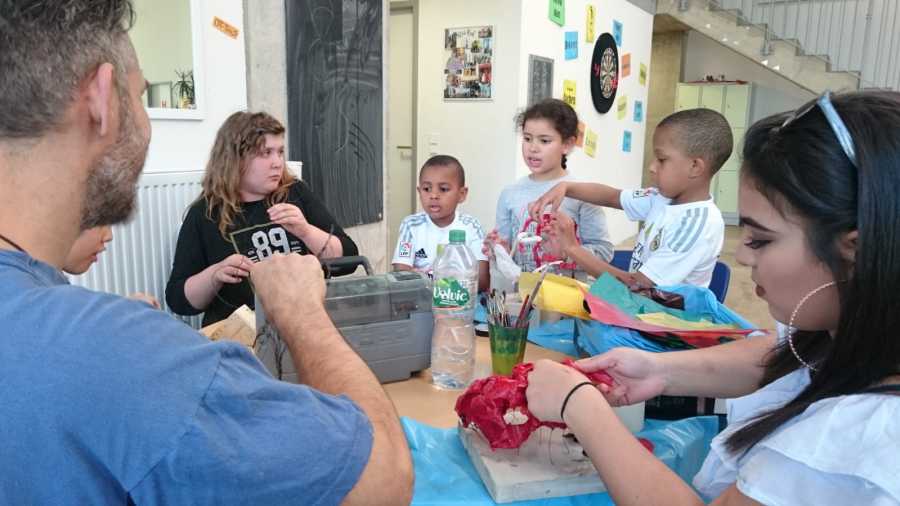 In the context of Stars of the Suburbs I worked with young refugees from Africa, Syria and Afghanistan. They modelled three-dimensional works from paper and binding wire and then designed them in color. It was really an impressive experience to get to know the young people and their different cultures. The experience as well as the connection to their homeland was also very expressive in their works.