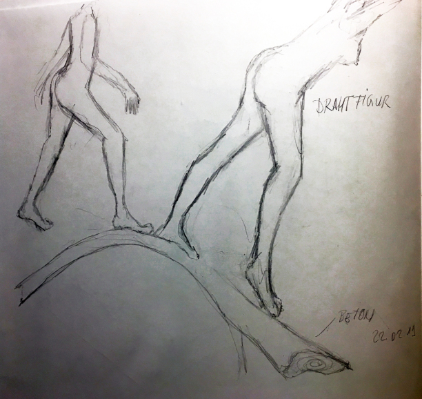 Pencil on paper / First Sketches to new ironwire and concrete sculpture / 02/2019