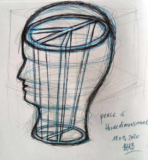 Pencil on Paper, Dream of a peaceful world 2020 / 2021 First Sketches for new ironwire sculptures