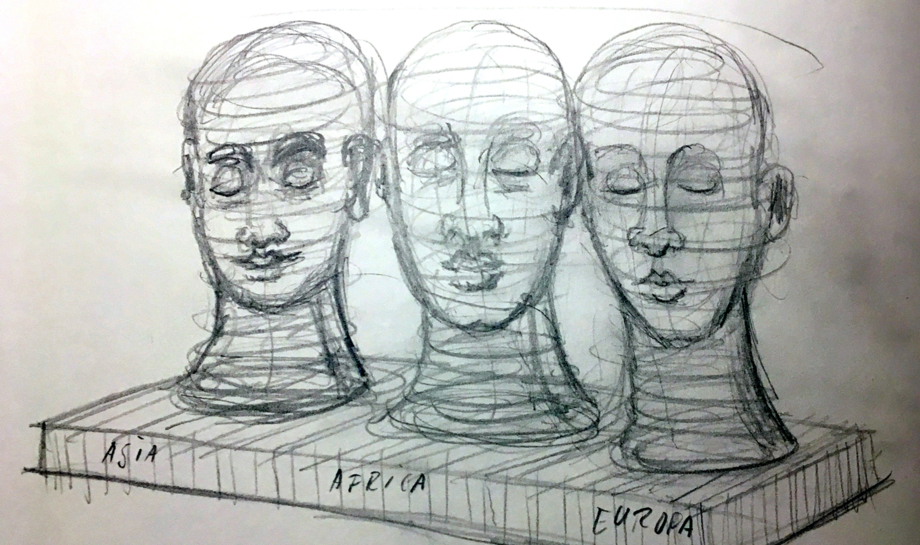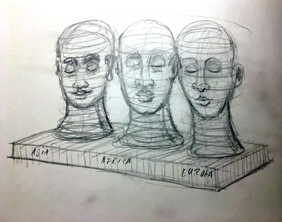 Pencil on paper / Head full of dreams ( up ) and Head in the clouds ( down ) 2020 / 2021 First Sketches for new sculptures