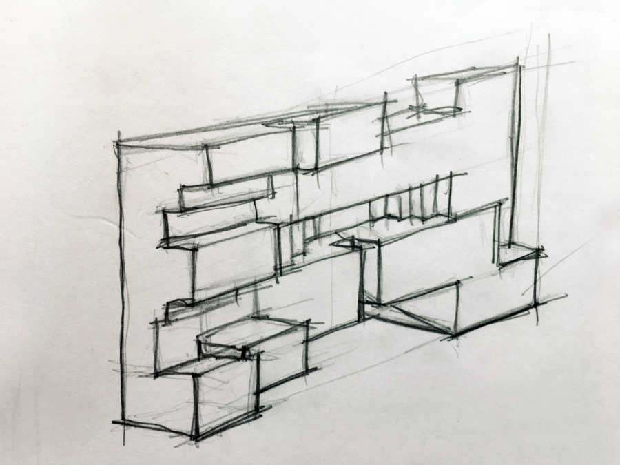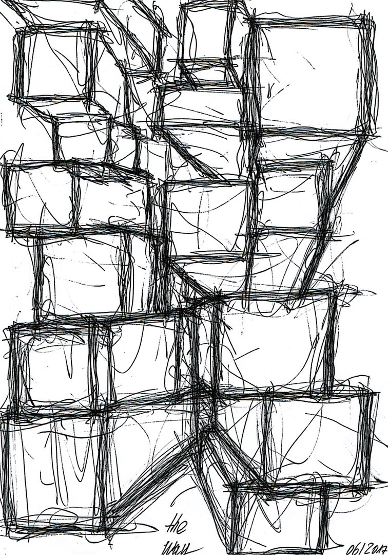 Fineliner on Paper, The Way 06/2017 Entwurfsskizze zu einer Raumplastik